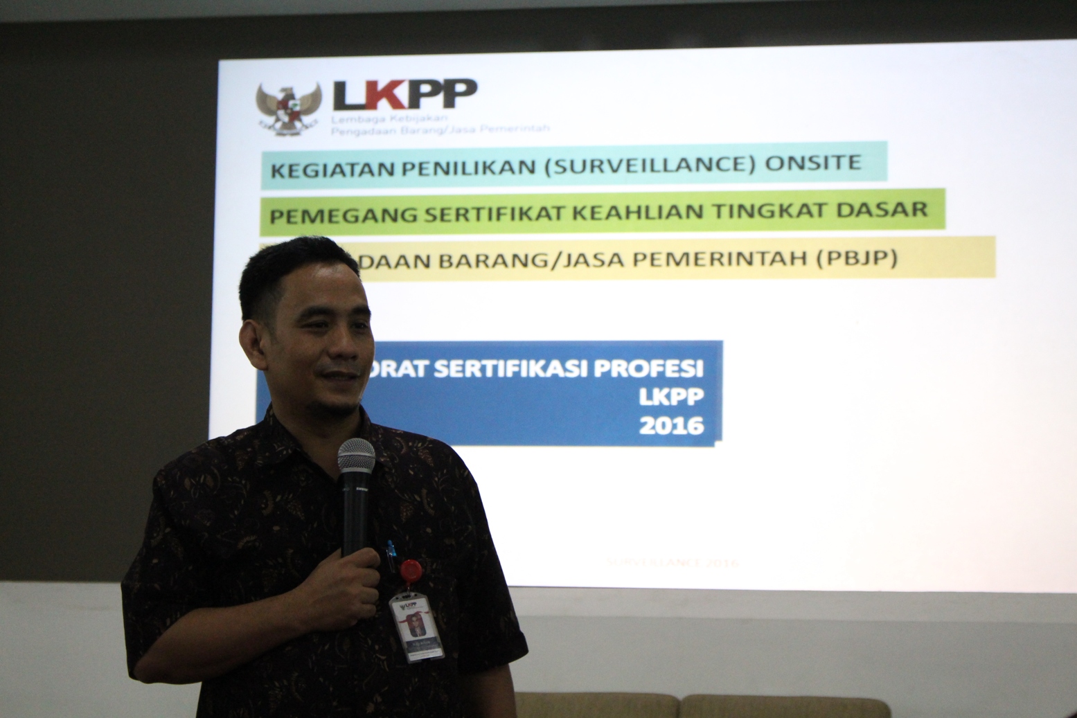 SURVEILLANCE ONSITE PEMEGANG SERTIFIKAT KEAHLIAN TINGKAT DASAR PENGADAAN BARANG/JASA PEMERINTAH (PBJP)